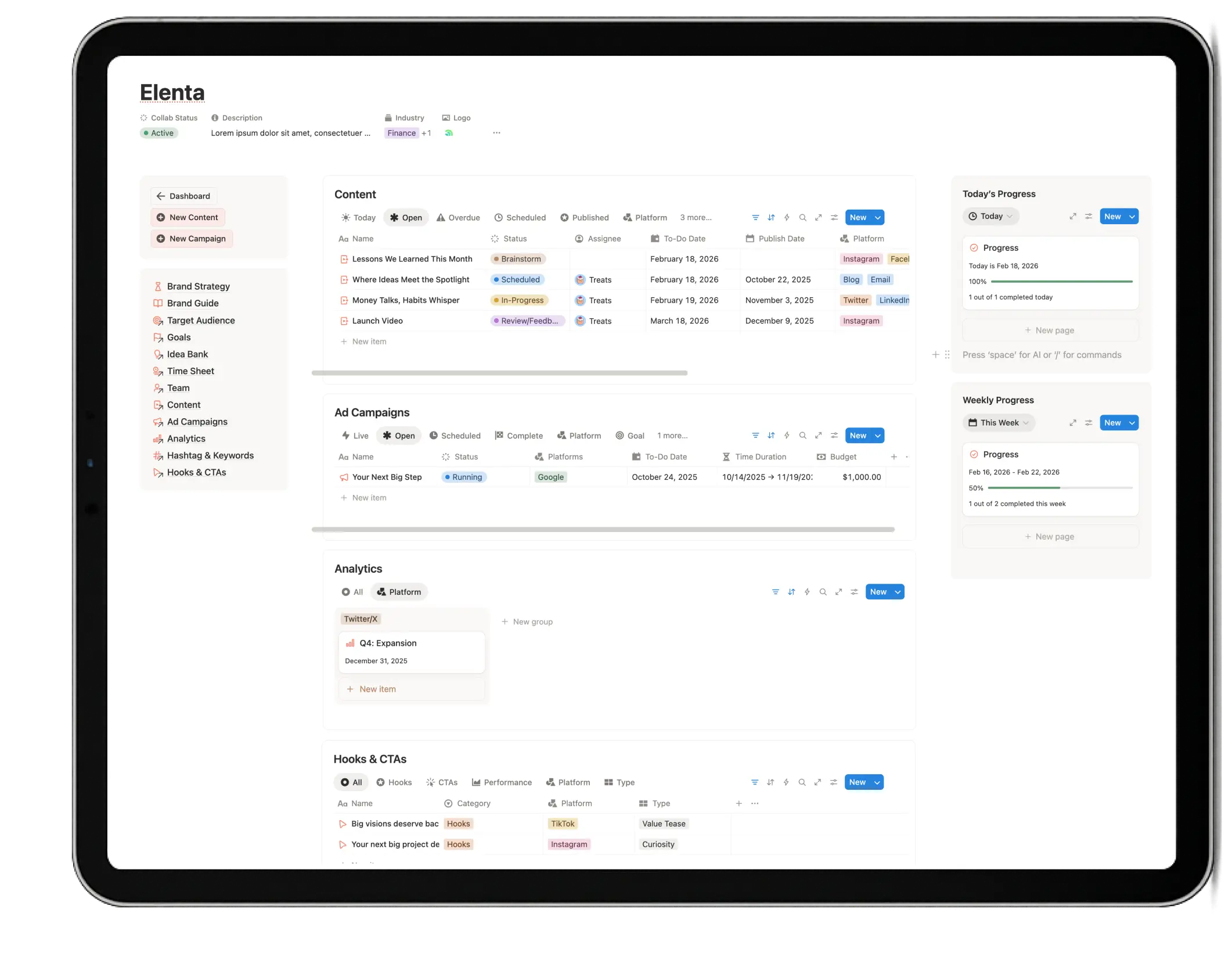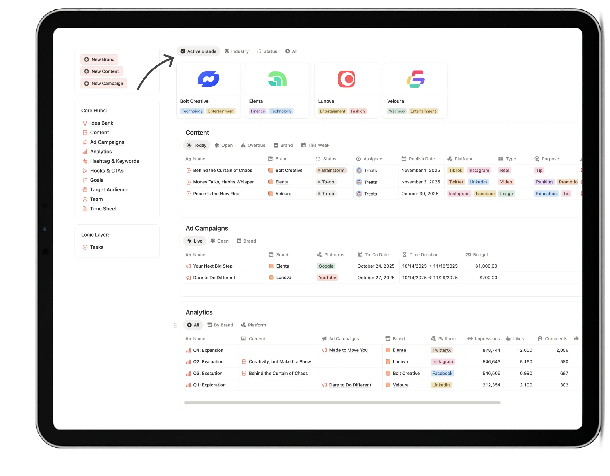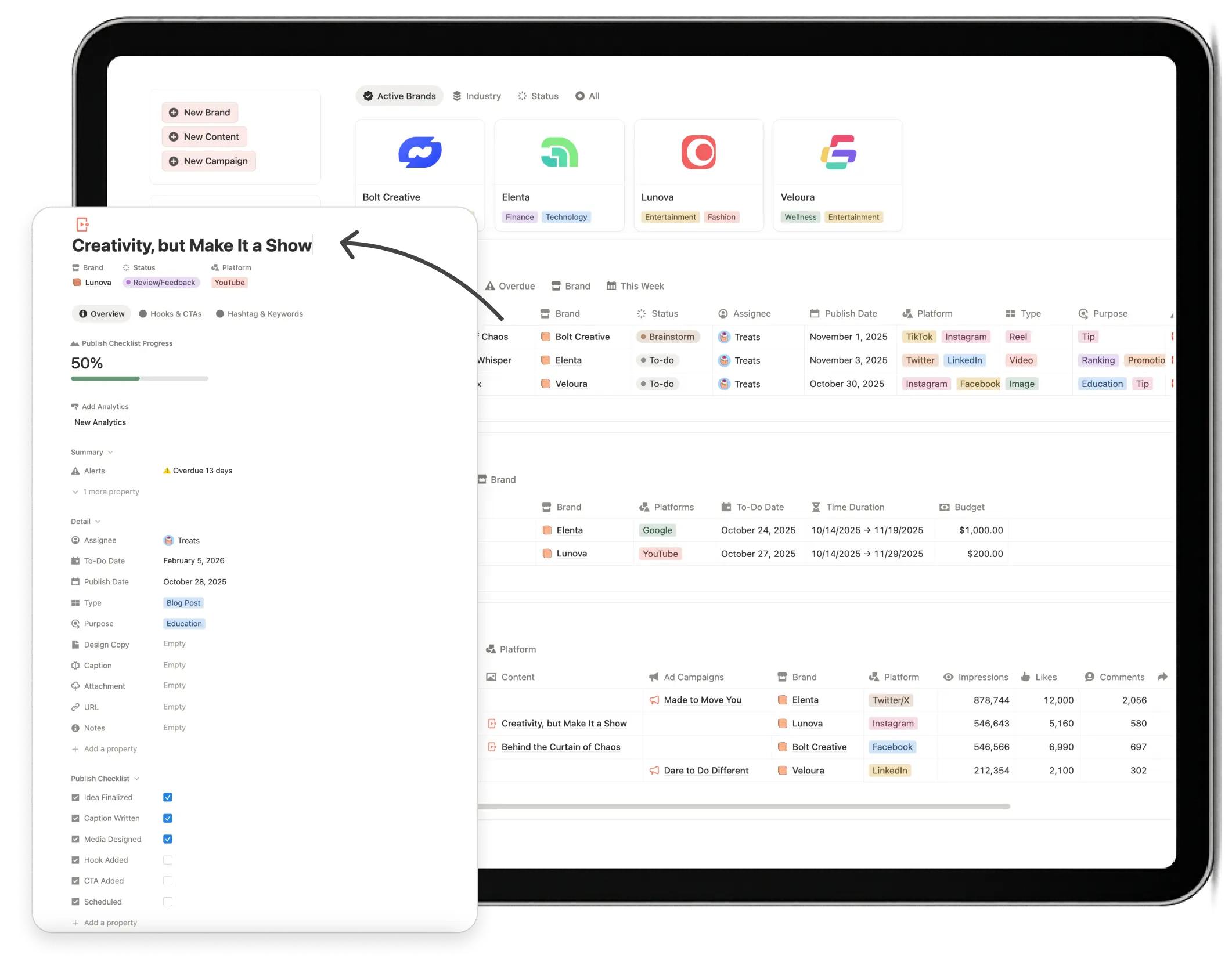 A studio-grade Notion Template for creators, freelancers, and teams managing content across multiple brands.