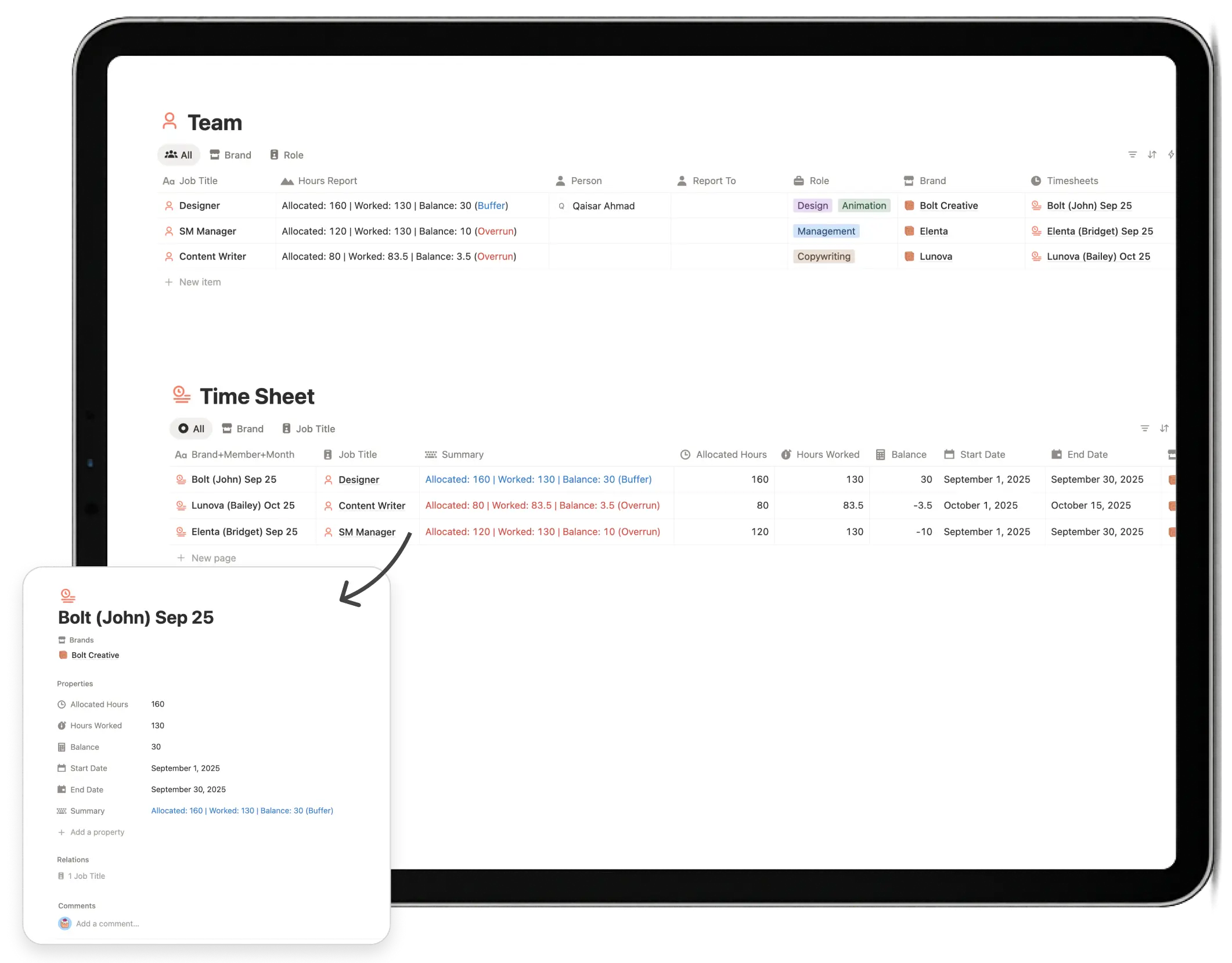 Assign tasks, track workload, and monitor capacity — useful for teams and agencies managing multiple contributors.