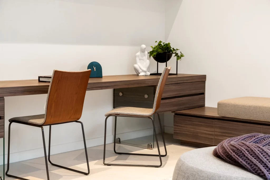 Fold-out desks often come with hidden compartments or flip-down surfaces. When work is over, everything folds back into a cabinet or shelf.